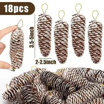 JOHOUSE 18PCS Snow Pinecone Ornaments, Large Spruce Pinecones Hanging Pinecones for Decorating Natural Pine Cones for Christmas Tree Hanging Decoration, Winter Vase Filler