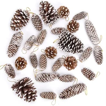 JOHOUSE 28PCS Natural Pine Cones with Snow - Rustic Holiday Decor