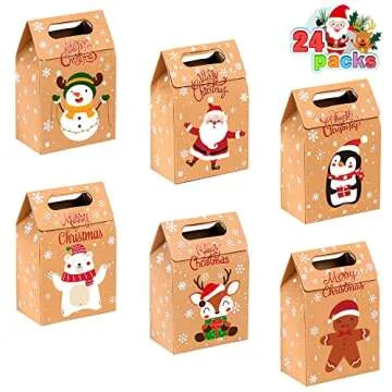 JOICEE Christmas Kraft Paper Gift Boxes 24pcs for Cookies, Treats, and Gifts