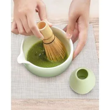 Introducing the Joiish Matcha Bowl and Whisk Holder Set, a beautifully crafted ceramic tea bowl designed to enhance your matcha experience. With its chic light green color and thoughtful features, this bowl not only serves as a functional tool for mixing your ceremonial-grade matcha but also stands as a stunning centerpiece in your tea collection. The unique spill-proof pouring spout enables you to serve your perfectly whisked matcha with ease, eliminating any mess while...