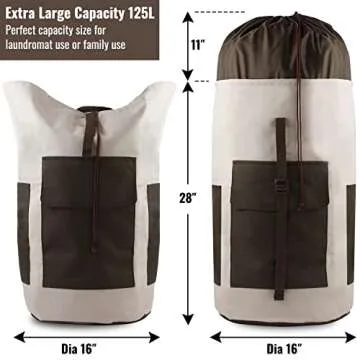 Show more Introducing the Extra Large Heavy Duty Laundry Bag, the ultimate solution for all your laundry needs! Measure a spacious 28''H X 16''L, with an incredibly extendable design that reaches up to 39’’H, offering a top capacity of 125L. This laundry bag is perfect for both laundromat and family use, comfortably accommodating up to 3-4 batches of laundry, making it an ideal gift for your family, friends, or students. Constructed from premium 900D tearing-resistant oxford, this heavyweight bag is not only waterproof but also machine washable, ensuring its durability for long-term use.