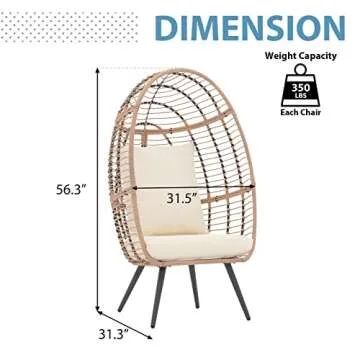 JOIVI Wicker Egg Chair, Oversized Indoor Outdoor Lounger Large Egg Basket Chair with Stand and Cushions for Patio Porch, Backyard, Living Room, Balcony (Beige Rattan, Creamy White Cushion)
