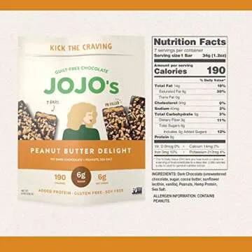 Deliciously Healthy: JOJO's Guilt-Free Peanut Butter Delight Dark Chocolate (7 Bars) - Keto, Vegan, Gluten Free, Low Sugar