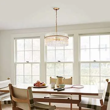 Jojospring Casandra 5-Light Brushed Brass Pendant Crystal Chandelier
