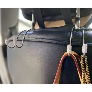 JOJOY LUX 2 Pack Seat Back Organizers,Bling Diamond Universal Organizer Hooks Car Headrest Hangers Hooks, Bag Organizers Rack and Hanger, Heavy-duty Auto Backseat Storage Hooks (Silver)