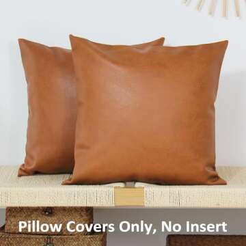 JOJUSIS Modern Leather Throw Pillow Covers for Couch Sofa Bed Set of 2 18 x 18 Inch 100% Faux Leather