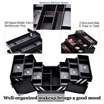The innovative adjustable tray with dividers allows you to customize all six trays, accommodating various sizes of makeup products. Whether your collection includes standard lipsticks or larger palettes, this versatile design prevents any spills, making your beauty routine more efficient than ever.