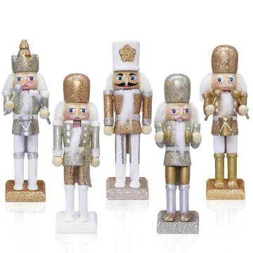 Show moreIntroduce a delightful touch of holiday spirit to your decorations with the Jolik Christmas Nutcracker Ornament Set. This stunning set features five intricately designed wooden nutcracker soldiers, each standing at 5.51 inches tall. With their classic European flair and vibrant gold and silver glitter, these nutcrackers not only bring energy into your home but also embody the enchanting tales of timeless fairy tales. Crafted from 100% real wood, these ornaments are durable and resistant to fading, ensuring that their charm lasts for many Christmas seasons to come.