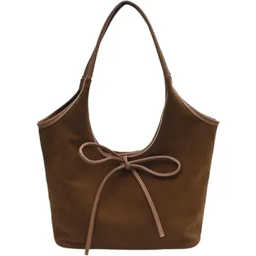 JOLILUNA Bow Suede Tote Bag for Women Brown Suede Bucket Tote Bag Burgundy Suede Work Tote Bag Hobo Handbags with Bow (Brown)