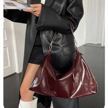 JOLILUNA Burgundy Purse Large Tote Bags for Women Hobo Bag Vegan Leather Tote Bag Aesthetics Bag (Burgundy)