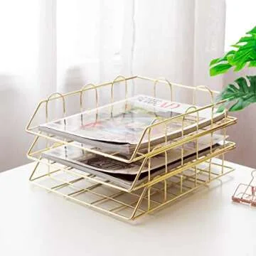 Show moreIntroducing the Jolitac Rose Gold 4-Tier Stackable Paper Tray Desk Organizer, a perfect blend of elegance and functionality tailored for modern workspaces. Crafted with premium plated metal and adorned with a stunning rose gold finish, this sophisticated organizer is designed to enhance your desk with its chic look. Each set includes four stackable tiers that not only offer ample storage for documents and stationery but also maximize your workspace efficiently. The innovative stackable design allows you to utilize vertical space effectively, providing you with an organized and aesthetically pleasing environment.