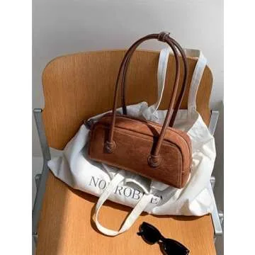 JOLLQUE Suede Shoulder Bag for Women - Vintage Small Handle Handbag, Trendy Retro Purse (Brown)