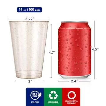 Show more Introducing our exquisite 14 oz Gold Glitter Plastic Cups, the perfect addition to elevate any celebration! With a stunning exterior sprinkled with golden sparkles, these cups bring an aura of elegance and refinement to your gatherings. Whether you’re hosting a lively party or an intimate get-together, the shimmering finish pairs beautifully with any drink color, instantly transforming your table setting into a luxurious display.