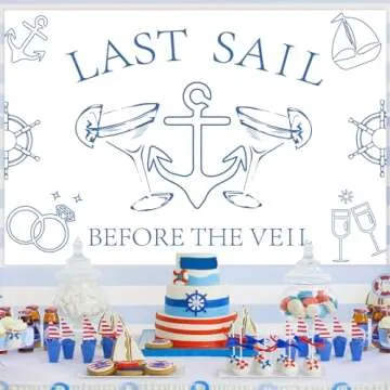 Jollyboom Last Sail Before The Veil Bachelorette Party Decorations, Last Sail Before The Veil Backdrop Banner Nautical Bachelorette Bridal Shower Engagement Party Supplies Photo Background