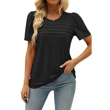 JomeDesign Fashion Tops for Women Short Sleeve Shirts Crew Neck Tshirts Loose Fit Casual Blouses Black