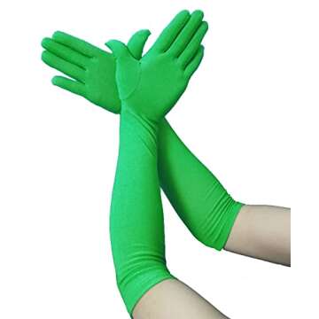 JOMOCARE Cosplay Gloves Long Tight Strech Gloves for Cosplay Costume Green Screen (Green)