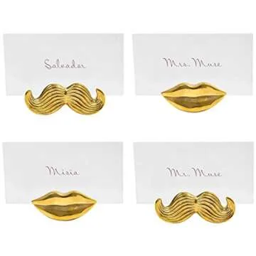 Show moreIntroducing the Jonathan Adler Brass Mrs. Muse Place Card Holders – a remarkable collection of four artistic and elegant place card holders that bring a touch of sophistication to any dining experience. Crafted meticulously in our Soho studio, each piece is a testament to Jonathan Adler's design philosophy, made from solid brass and refined by skilled artisans. These holders are not just functional; they are sculptural accents that elevate the aesthetic of your table setting, perfectly combining art with utility. Over time, the polished brass will develop a rich, natural patina, adding character and charm. Whether you are hosting an intimate dinner or a lavish event, these place card holders will guide your guests with style, creating lasting impressions.