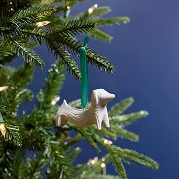 Show moreIntroducing the Jonathan Adler Dachshund Ornament, a charming touch of whimsy that will elevate your holiday decor. Crafted with meticulous attention to detail, this delightful ornament measures 4 inches wide, 1 inch deep, and 2 inches high, making it the perfect addition to any Christmas tree or festive display. Constructed from high-quality, white unglazed porcelain, this ornament showcases a sleek and clean design that adds a modern twist to traditional holiday decorations. Its lightweight design allows for easy hanging, although some users report it may require strategic placement to ensure it hangs straight. With its eye-catching dachshund silhouette, this ornament makes a thoughtful gift for dog lovers and a chic accent for your seasonal decor.