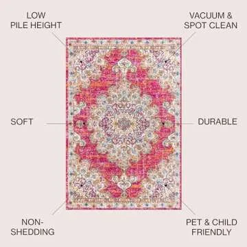 JONATHAN Y BMF104A-5 Bohemian Flair Boho Distressed Medallion Indoor Area-Rug Floral Easy-Cleaning High Traffic Bedroom Kitchen Living Room Non Shedding, 5 ft x 8 ft, Pink/Cream
