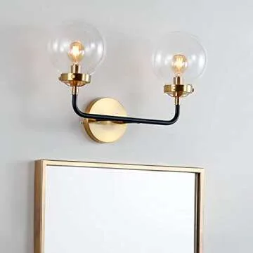 JONATHAN Y JYL9010A Caleb 2-Light 18" Brass Wall Sconce Contemporary Reversible for Bedroom Livingroom Bathroom Hallway, Brass Gold/Black