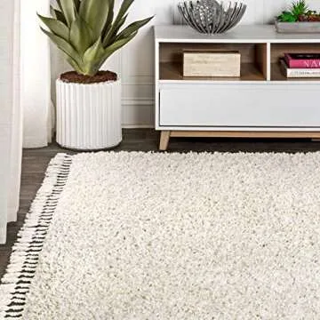 JONATHAN Y MCR100D-8 Mercer Shag Plush Tassel Indoor Area-Rug Bohemian Modern Contemporary Solid Easy-Cleaning Bedroom Kitchen Living Room, 8 X 10, Cream with Tassel