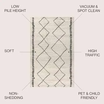 JONATHAN Y MOH203A-4 Zaina Moroccan Beni Souk Indoor Farmhouse Area-Rug Bohemian Minimalistic Geometric Easy-Cleaning Bedroom Kitchen Living Room Non Shedding, 4 X 6, Cream,Black