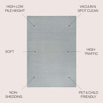 Show moreTransform your space with the JONATHAN Y SCN102E-8 Aarhus High-Low Minimalist Scandi Striped Indoor/Outdoor Area Rug, a stunning blend of style and functionality that seamlessly integrates into any home decor. This exquisite rug features a durable high-low design with a luxurious short 0.25-inch pile, making it perfect for high-traffic areas while providing a soft surface to walk on. Crafted from synthetic fibers, this rug not only boasts water and stain resistance but also ensures that its fibers are tightly woven, reducing fluff shedding that often plagues lower-quality rugs. This masterpiece in alternating ivory and aqua will enhance your bedroom, kitchen, or living room with its captivating minimalist aesthetic, bringing a fresh and modern touch to your interiors. With dimensions of 8 x 10, it offers ample coverage for a significant impact without overwhelming your space.