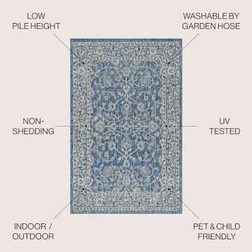 JONATHAN Y SMB103A-8 Palazzo Vine and Border Textured Weave Indoor Outdoor Area-Rug Coastal Bohemian Rustic Glam Easy-Cleaning Bedroom Kitchen Backyard Patio Non Shedding, 8 X 10, Navy/Gray