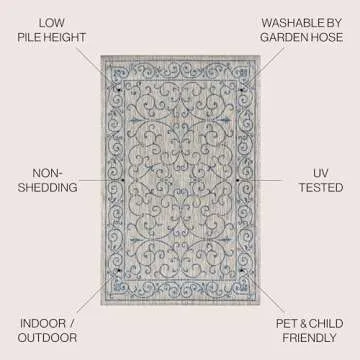 JONATHAN Y SMB106C-3 Charleston Vintage Filigree Textured Weave Indoor/Outdoor Gray/Navy 3 ft. x 5 ft. Area-Rug, Classic,Easy-Cleaning,HighTraffic,LivingRoom,Backyard, Non Shedding