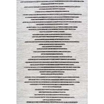 JONATHAN Y SMB124D-5 Zolak Berber Stripe Geometric Indoor Outdoor Area Rug Bohemian Contemporary Easy Cleaning Bedroom Kitchen Backyard Patio Non Shedding, 5 X 8, Ivory/Black