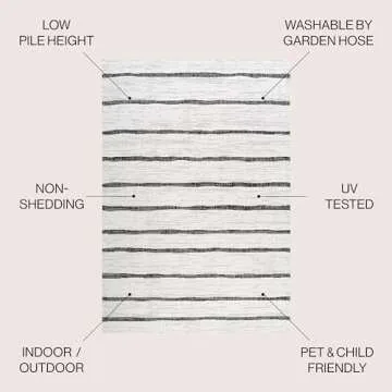 JONATHAN Y SMB125D-8 Colonia Berber Stripe Indoor/Outdoor 8 ft. x 10 ft. Area Rug, Contemporary, Bohemian, Minimalistic, Rustic, Pet Friendly, Stain Resistant, Bedroom, Backyard, Patio, Ivory/Black