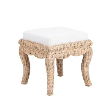 JONATHAN Y VSL1000A Rowan 19.7" Bohemian Designer Woven Rattan/Wood Vanity Stool, White Cushion with Natural Frame, for Living Room, Bedroom, Entryway, Foyer