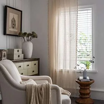 JOOJA Boho Lace Curtains 2 Panels Beige Lace Sheer Curtains with Crochet Semi Sheer Vintage Lace Curtains for Living Room Bedroom, Farmhouse, Bohemian Style Modern Boho Curtains (Crochet Beige, 59x84)