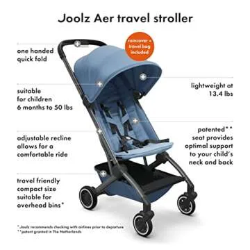 Why You will Love This Product: You'll cherish the Joolz Aer for more than just its functionality. This stroller enhances your lifestyle by giving you the freedom to navigate the world with ease, all while ensuring your little one is comfortable and content. The lightweight build and compact design reduce the stress of outings, allowing you to focus on creating family memories without the burden of bulky baby gear. Less| manufacturer | Joolz |