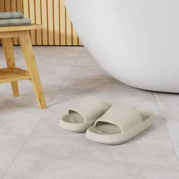 Joomra Womens Slides Thick Sole Platform Non Slip House Shower Bathroom Pillow Slippers for Ladies Cushioned Tan Soft Indoor Bath Female Sandals Beige 35-36