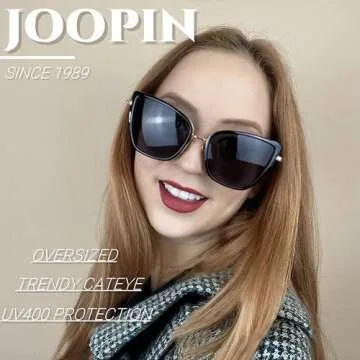 Joopin Oversized Cateye Sunglasses Fashion Cat Eye Sun Glasses UV400 Trendy Becky Shades for Women Ladies Sunnies (Black Simple Packaging)