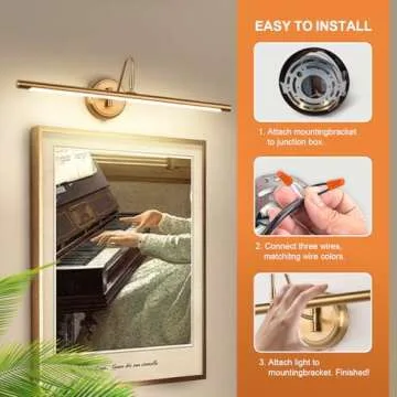 JOOSENLUX Dimmable Led Picture Lights 24.4'' Brass Golden-Like Hard-Wired Display Lighting for Paintings with Swing Arm Wall Mount Brief Metal Artwork Hallway Sconce Lamps 14W Warm White 3000K