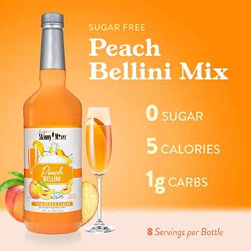 Jordan's Skinny Mixes Sugar Free Peach Bellini Mix, Flavored Cocktail Mixer for Drinks, Peach Drink Flavoring for Cocktails & Mocktails, Low Calorie, Gluten Free, Keto Friendly, 32 Fl Oz, 1 Pack