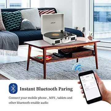 JORLAI Record Player Bluetooth Vinyl Turntable 3 Speed Vintage Record Players with Stereo Speakers Belt Driven Portable Nostalgic Phonograph White