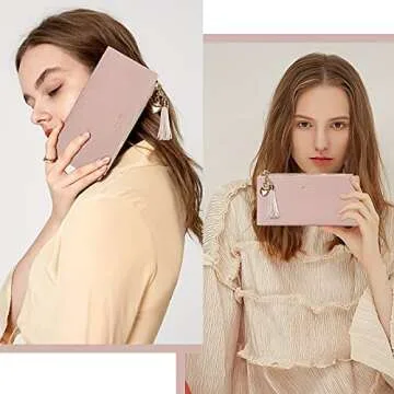 JOSEKO Womens Wallet Wallet for Women Tassel PU Leather Multi-Slots Long Wallet Slim Card Holder Purse Zipper Clutch for Women Pink