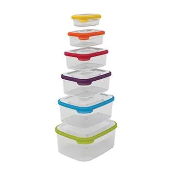 Show more Introducing the revolutionary Joseph Joseph Easy-Find Color-Coded Nesting Food Storage Container Set, a must-have for every kitchen enthusiast! Designed with a sleek and modern aesthetic, this innovative set features multiple sizes, ranging from 8 ounces to an impressive 152 ounces, making it the perfect solution for any storage need. No longer will you struggle with mismatched lids and container chaos, as each lid is cleverly designed to snap together and correspond with its container's color-coded bottom.