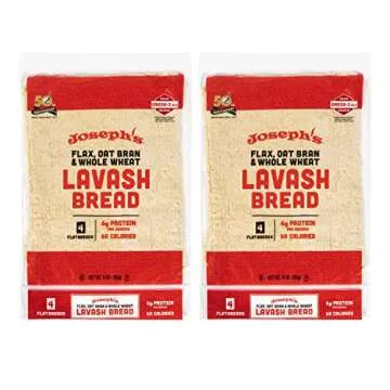Show moreDiscover the perfect blend of health and taste with the Joseph's Lavash Bread Value 2-Pack. This delightful assortment includes Flax Oat Bran and Whole Wheat varieties, offering a savory and nutritious option for those who prioritize both flavor and wellness. Each pack contains a total of eight squares (four flatbreads per pack), freshly baked to preserve its fantastic taste and smooth texture. Ideal for wraps, sandwiches, or as a side accompaniment, Joseph's Lavash not only meets a low-carb requirement but also serves as a high-fiber delight, catering perfectly to all health-conscious food lovers.
