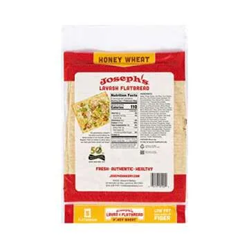 Show moreDiscover the delicious and nutritious Joseph's Lavash Bread Value 3-Pack, a perfect addition to a healthy lifestyle! This unique pack includes 15 soft and versatile flatbreads, each measuring 9.75" x 8.25" x 0.25". Made with a delightful honey wheat flavor, these lavash breads are expertly crafted to provide a satisfying base for any meal, snack, or wrap you envision. Each flatbread is fresh-baked to perfection, ensuring you taste the quality in every bite. At just 110 calories per serving, they are designed for those who prefer a healthier, low-carb option without compromising on flavor.