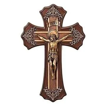 Joseph's Studio by Roman, Cross and Crucifix Collection, 10.25"H VICTORIAN OAK/GOLD, Home Décor, Devout Gift, Prayerful Inspiration (1x6x10)