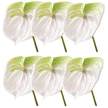 JOSON 6 PCS 27" Simulation Large Artificial Anthurium Lily Flowers Permanent Flower for Home Decoration Bouquet and Green Leaf, Wedding Festival Decoration Flower Arrangement (White)