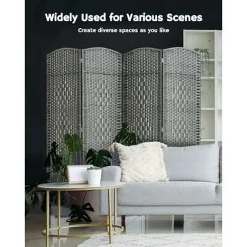 JOSTYLE Folding Privacy Room Divider, 4 Panel Screen Divider 6 ft. Tall Freestanding Extra Wide Rattan Room Partition Wall Separation Dividers, Grey