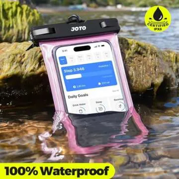 Show more Introducing the JOTO 2 Pack Waterproof Phone Pouch Case, your ultimate companion for all water-based adventures! This innovative waterproof case allows you to keep your smartphone safe while indulging in activities like swimming, snorkeling, or lounging at the beach. Each pouch fits devices up to 7 inches tall and 4 inches wide, accommodating a range of smartphones, including iPhone models up to 16 Pro Max and Galaxy S models up to S24. Made from super clear material, these pouches provide excellent touch sensitivity allowing you to capture stunning underwater photos and videos without removing your phone. The durable design ensures that your belongings remain secure and protected from water, sand, and dirt during your excursions.