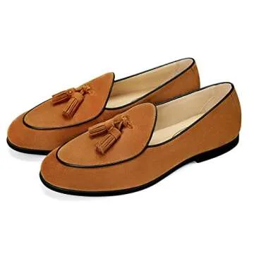Journey West Men's Tassel Slip-on Loafer Belgian Suede Loafers Casual Leather Shoes for Men Brown US 9