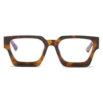 JOVAKIT Fashion Square Blue Light Glasses for Men Women Simple Designer Style Thick Frame Computer Eyeglasses Anti Eyestrain (Tortoise)