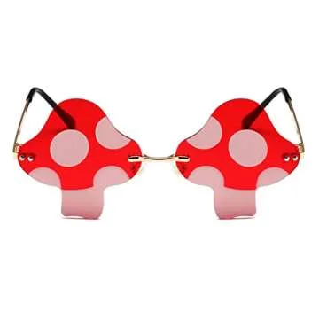 JOVAKIT Mushroom Shaped Sunglasses for Women Men Vintage Rimless Sun Glasses Retro rave Party Halloween Eyeglasses (Gold/Red)